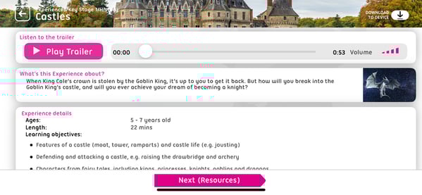 Just go to the relevant Experience and click the pink arrow labeled 'Next (Resources)'.